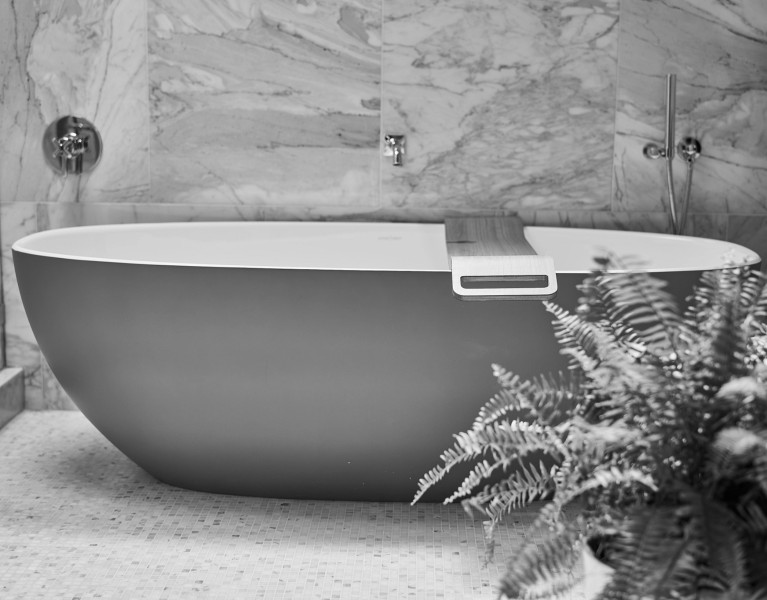 Select from Victoria + Albert custom colour palettes to personalize the exterior of our freestanding bathtubs and sinks in a rich array of RAL colours, in gloss or matte finishes. Coordinate hues to complement bathroom décor, or let colour lead the design principle.